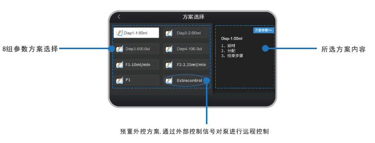 · 預(yù)置外控方案,用于通過外部信號對泵進行操作和控制
