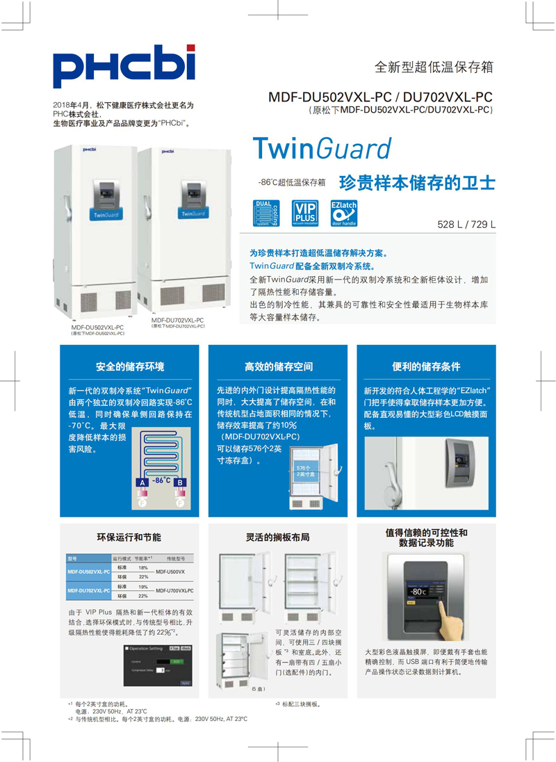 為珍貴樣本打造超低溫儲存解決方案。TwinGuard 配備全新雙制冷系統(tǒng)。全新TwinGuard采用新一代的雙制冷系統(tǒng)和全新柜體設(shè)計,增加了隔熱性能和存儲容量。出色的制冷性能,其兼具的可靠性和安全性最適用于生物樣本庫等大容量樣本儲存。