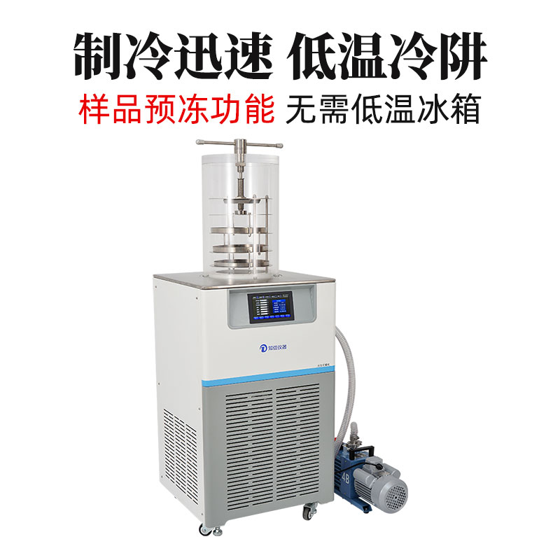 冷凍干燥機(jī)是將含水物品預(yù)先凍結(jié),然后使其水分在真空狀態(tài)下升華而獲得干燥物品的一種技術(shù)方法。經(jīng)冷凍干燥后物品理化性質(zhì)、生物特性基本不變,易于長(zhǎng)期保存,復(fù)水后物品能迅速恢復(fù)到凍干前的形態(tài),并且能保持其原有的生化特性。因此,冷凍干燥機(jī)在化工、食品、醫(yī)藥、生物等制品的制備和檢測(cè)領(lǐng)域得到廣泛應(yīng)用。