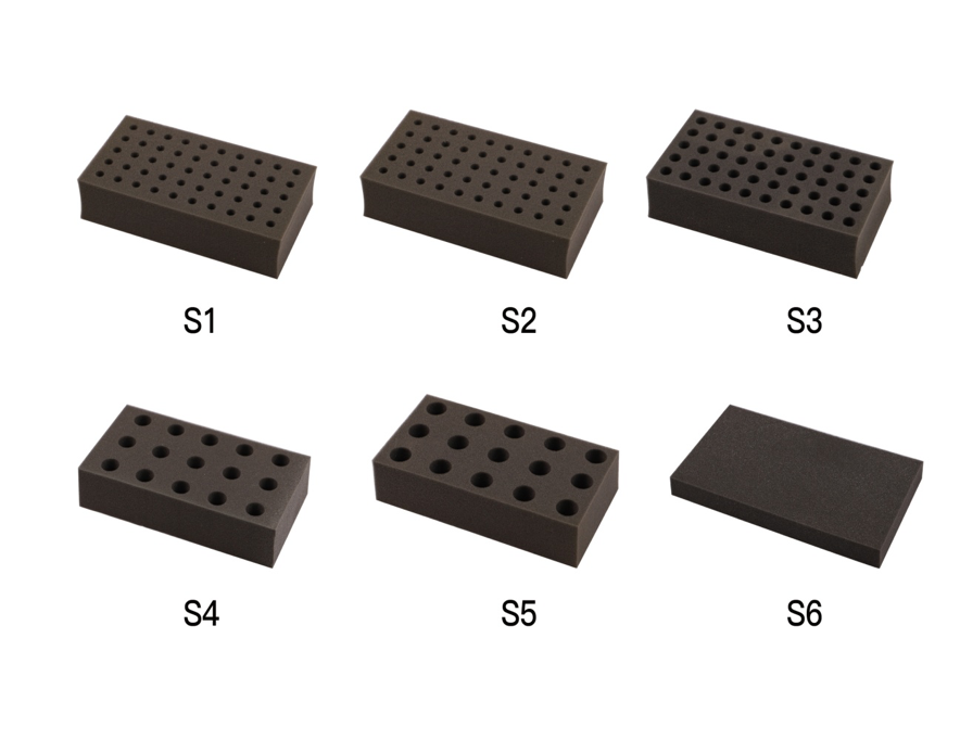S5 | Φ29mm泡沫試管架(可放50ml離心管) | 15 | 245×132×45 mm |