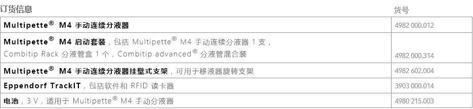 訂貨號:4982000314 Multipette? M4 手動連續(xù)分液器結(jié)合9種不同規(guī)格 Combitips advanced? 分液管,提供從 1 μL——10 mL 的分液范圍,一次吸液可完成最高 100 次分液。特別適合于高粘度、易起泡、易揮發(fā)、危險性等問題液體的移取及分裝。