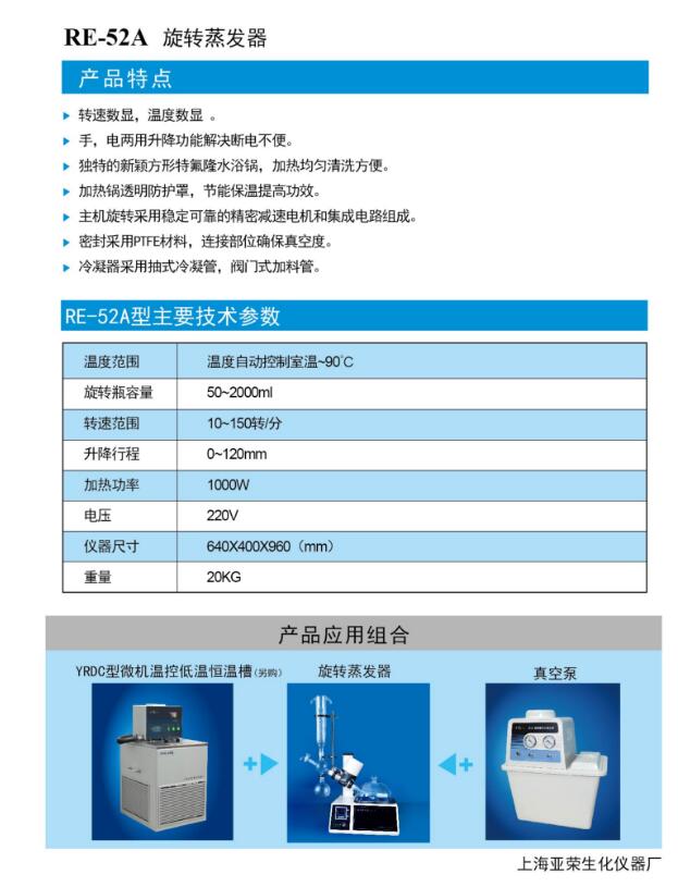 用途簡介:旋轉(zhuǎn)式蒸發(fā)器是采用旋轉(zhuǎn)蒸發(fā)瓶(燒瓶),增大蒸發(fā)面積在減壓下置于水浴中一邊旋轉(zhuǎn),一邊加熱的裝置,使瓶內(nèi)溶液擴散蒸發(fā)。是化學(xué)工業(yè),醫(yī)藥工業(yè),高等院校和科研實驗室等單位用于制造及分析實驗賴以濃縮,干燥,回收等較為理想的必備基本儀器。