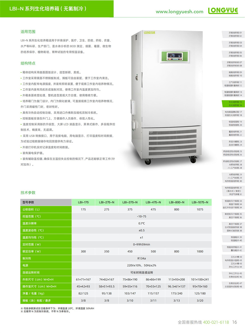 LBI-N 系列生化培養(yǎng)箱適用于環(huán)境保護、醫(yī)療、衛(wèi)生、防疫、藥檢、農(nóng)畜、水產(chǎn)等科研、生產(chǎn)部門,是水體分析的 BOD 測定、細菌、霉菌、微生物的培養(yǎng)保存、植物栽培、育種試驗的專用恒溫設(shè)備。
