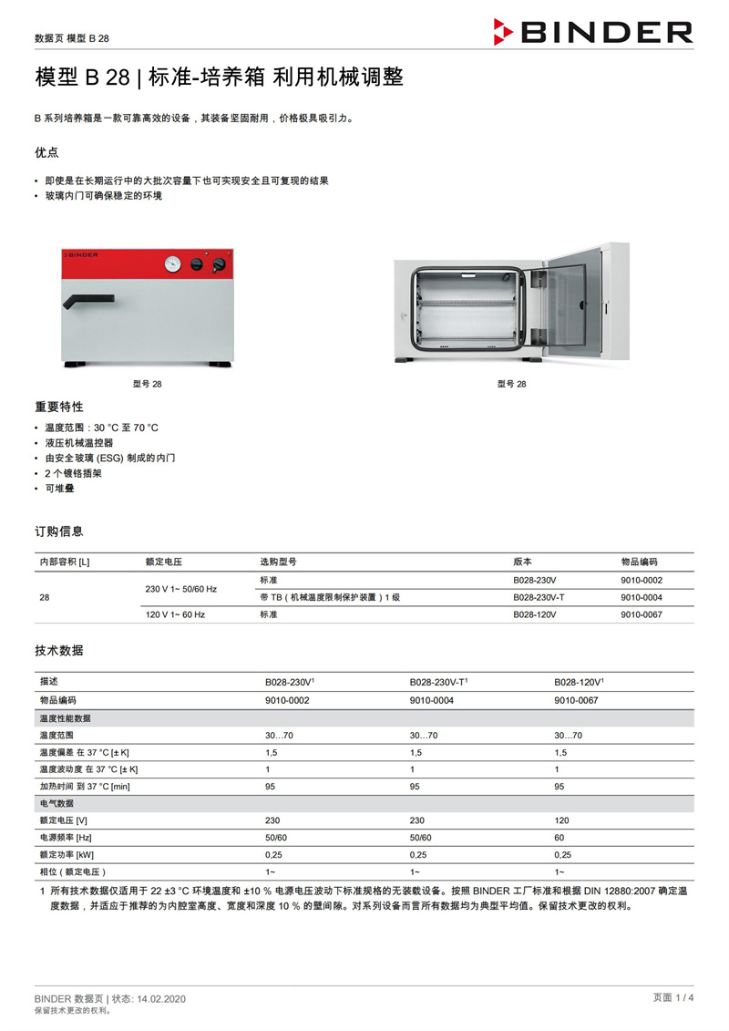 德國binder模型 B 28 | 標(biāo)準(zhǔn)-B028-120V培養(yǎng)箱。德國binder B 系列培養(yǎng)箱是一款可靠高效的設(shè)備,其裝備堅(jiān)固耐用,價(jià)格極具吸引力。