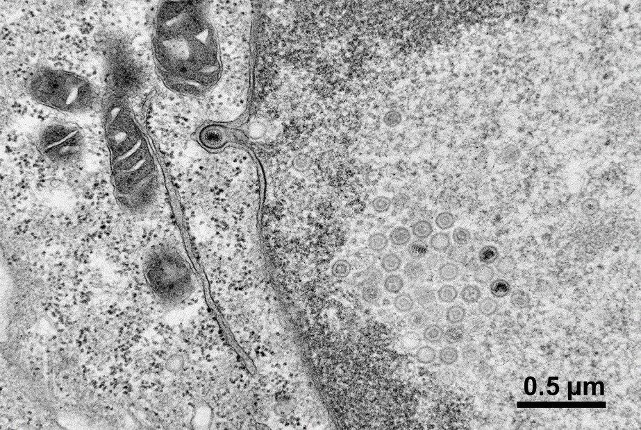 Vero細(xì)胞內(nèi)的HSV病毒(被感染細(xì)胞的組織切片)